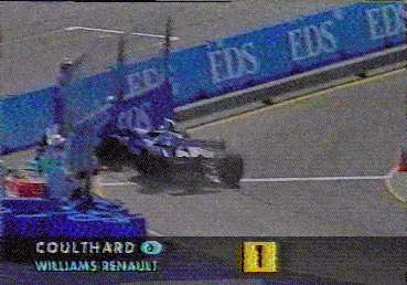 As usual the majority of events at the Australian Grand Prix were of a more light hearted nature. Adelaide always seems to have a end of term atmosphere. The race was the funniest thing seen in F1 in such a while. David Coulthard again decide to prove that he was the master of Brain Fade, by introducing himself to the pit lane wall, while leading the race. Frank William's is not doubt relieved that he gave Coulthard to Ron Dennis for Christmas after all.