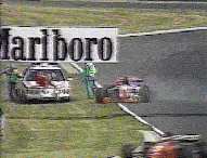 It is with some hesitation that I include this as a humorous moment of 1995. When Taki Inoue's Arrows-Hart retired, a small fire occurred in the rear of the car. The Hungarian Marshals displayed the typical incompetence of marshals and Taki was forced to grab a extinguisher off one of them. As he ran back to his car, he stepped into the path of the course car, which promptly hit him. Taki was uninjured, but as with Formula One, tragedy can never be far away. However as most people are of the opinion that Taki has no right being in the pinnacle of world motorsport, I felt it appropriate that this was included.